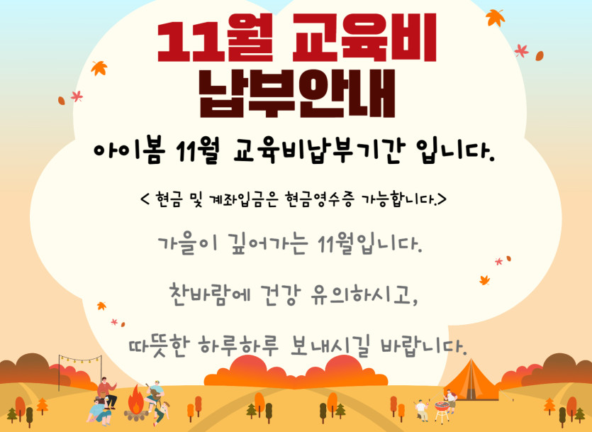 [아이봄 11월 교육비 납부 안내]